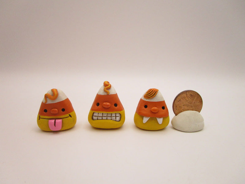 These little Halloween candy fellows arrive as a set of 3. They are just 1 inch tall each. You get the fanged fellow, the sticking out his tongue guy and the big cheesy grin character. This price is for all three.