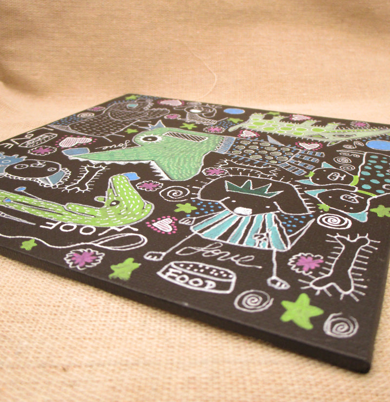 This is a 6x6 inch dog doodle illustration created on a flat canvas panel. This doodle illustration was made by just doodling pups! Some acrylic was used along with a white acrylic pen. Sealed and signed. Original. Unframed but you can easily frame this yourself or prop it up on a table easel.