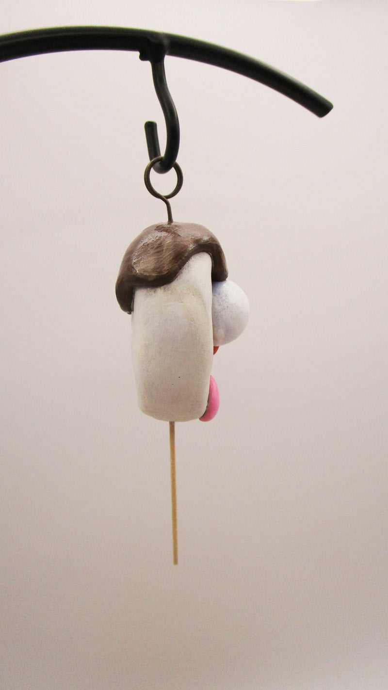 Christmas ornament ice cream bar snowman! This piece is called "catching a snowflake". This ice cream style bar has a glossed up chocolate topping, a pair of big eyes, carrot nose, "wet" tongue with single snowflake all on a wooden ice cream stick. This measures 3.75 inches from top of head to bottom of stick. Actual head measures 2 inch round and a little over .5 thick.